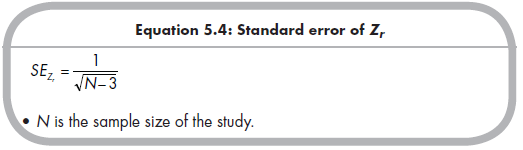 Although I defer further description until Chapter 8, I provide the equation for the standard error here, as you should enter these into your metaanalytic database during the coding process. The standard error of Zr is shown in Equation 5.4.