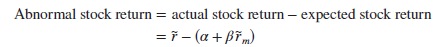 Alpha (a) states how much on average the stock price changed when the market index was unchanged. Beta (fl) tells us how much extra the stock price moved for each 1% change in the market index.[8] Suppose that subsequently the stock price return is r in a month when the market return is rm. In that case, we would conclude that the abnormal return for that month is
