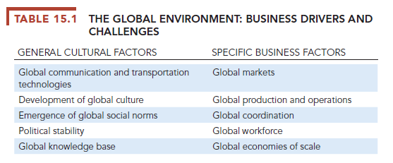 Table 15.1 lists the business drivers in the global environment that are leading all industries toward global markets and competition.