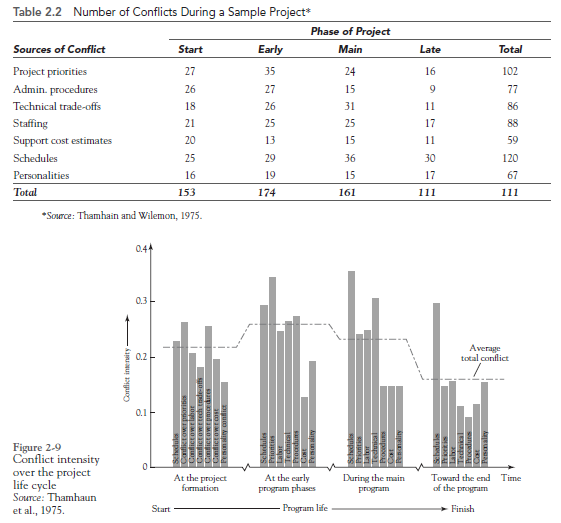 “start” and the “early” phase of its life is probably unclear, we can lump them together for the observation that a lion’s share of the conflicts will come near the beginning of the project—and the PM must be prepared to deal with them.