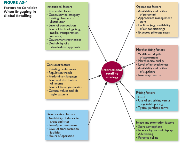 When embarking on an international retailing strategy, firms should consider the various factors shown in Figure A3-1.