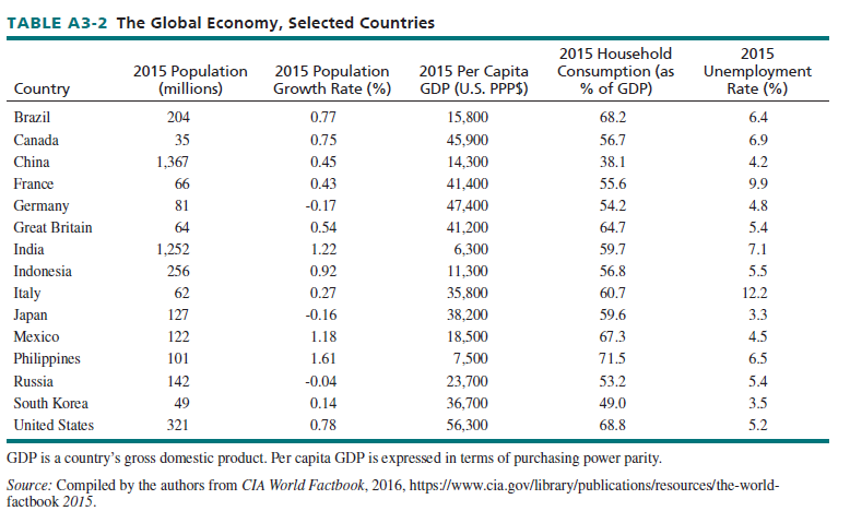 In devising a global strategy, a retailer must pay attention to the concept of standardization. Can the home market strategy be standardized and directly applied to foreign markets, or do personnel, physical facilities, operations, advertising messages, product lines, and other factors have to be adapted to local conditions and needs? Table A3-2 shows how the economies differ in 15 countries.