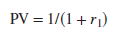 Consider a simple loan that pays $1 at the end of one year. To find the present value of this loan you need to discount the cash flow by the one-year rate of interest, r1: