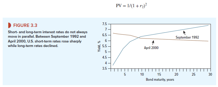 The relationship between short- and long-term interest rates is called the term structure of interest rates. Look, for example, at Figure 3.3, which shows the term structure in two different years. Notice that in the later year, the term structure sloped downward; long-term interest rates were lower than short-term rates. In the earlier year, the pattern was reversed and long-term bonds offered a much higher interest rate than short-term bonds. You now need to learn how to measure the term structure and understand why long- and short-term rates often differ.
