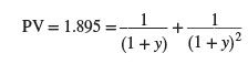 Once we know that PV = 1.895, we can go on to calculate a single discount rate that would give the same answer. That is, we could calculate the yield to maturity by solving for y in the following equation: