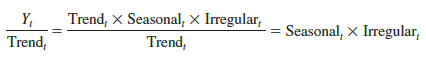 By dividing each side of this equation by the trend component Trendt , we can identify the combined seasonal-irregular effect in the time series.