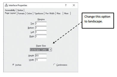 .) After selecting this option, a pop-up window will appear. There are seven tabs at the top of this window that let you change numerous visual options in AMOS. Go to the “Page Layout” tab at the top and then select the paper size option from “Portrait-Letter” to “Landscape-Letter”. This will now rotate your page into a land- scape format.