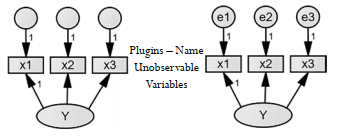 Tip 3: Have AMOS label all your error terms. If you have a model with numerous constructs and indicators, you will find that it can be quite laborious to label all the error terms for every indicator. AMOS has a function that will label all error terms for you. In the “Plugins” menu option at the top, you need to select “Name Unobserved Variables”.This will label all error terms with a letter “e” and a number. AMOS will start numbering error terms based on the order of creation. The first unobservable construct and error terms created in AMOS will be where the error numbering will start.