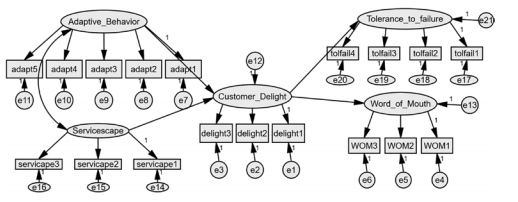 A word of caution: this function will try to label unobserved constructs, too, if you have not labeled them already.The unobserved constructs will be labeled a letter “F” and a number. I would not recommend letting AMOS label your unobservable constructs, but I do find this function quite handy in labeling all the error terms in your model.