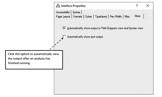 to see your results. The newer version of AMOS will allow the text output to automatically appear after running an analysis. In the Interface Properties option