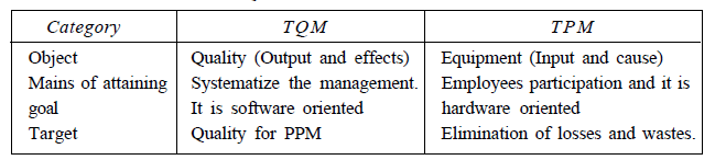 The differences between TQM and TPM are summarized below.