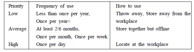 This means sorting and organizing the items as critical, important, frequently used items, useless, or items that are not need as of now. Unwanted items can be salvaged. Critical items should be kept for use nearby and items that are not be used in near future, should be stored in some place. For this step, the worth of the item should be decided based on utility and not cost. As a result of this step, the search time is reduced.