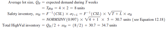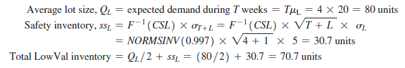 Across all 24 territories, HighMed thus carries LowVal inventory = 24 X 70.7 = 1696.8 units (the true number is 1697.3 if we do not round safety inventory to the first decimal).