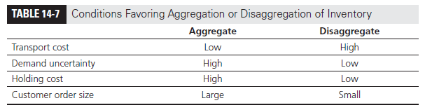 Inventory aggregation is a good idea when inventory and facility costs form a large fraction of a supply chain’s total costs. Inventory aggregation is useful for products with a large value-to- weight ratio and for products with high demand uncertainty. For example, inventory aggregation is valuable in the diamond industry, because diamonds have a large value-to-weight ratio and demand is uncertain. Inventory aggregation is also a good idea if customer orders are large enough to ensure sufficient economies of scale on outbound transportation. When products have a low value-to-weight ratio and customer orders are small, however, inventory aggregation may hurt a supply chain’s performance because of high transportation costs. Compared with diamonds, the value of inventory aggregation is smaller for best-selling books that have a lower value-to-weight ratio and more predictable demand.