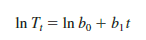 Many statistical software packages have the capability to compute an exponential trend equation directly. Some software packages only provide linear trend, but by applying a natural log transformation to both sides of the equality in equation (17.8) we can apply the equivalent linear form: