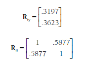 This overall correlation matrix is then partitioned into matrices of (1) the correlations of the dependent variable (rejection) with the predictors (relational and overt aggression),Riy; and (2) the correlations among the predictors, Rii: