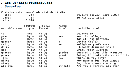Source: Hamilton Lawrence C. (2012), Statistics with STATA: Version 12, Cengage Learning; 8th edition.
