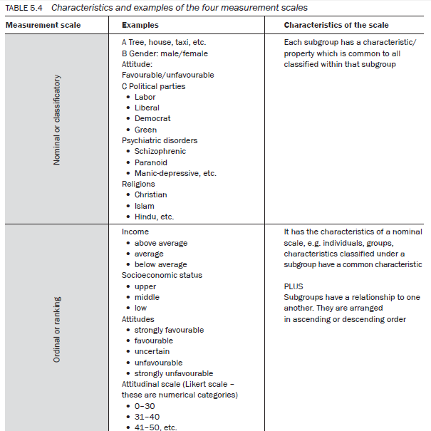 However, Bailey considers that ‘S S Stevens constructed a widely adopted classification of levels of measurement’ (1978: 52). As this book is written for the beginner and as Stevens’s classification is simpler, it is this that is used for discussion in this chapter. Stevens has classified the different types of measurement scale into four categories:
