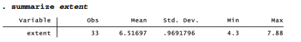 Thus, we show the calculation of summary statistics for a variable named extent as follows: