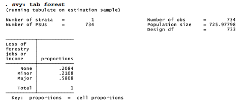 Ten of the questions for this example, forest through losscen, ask whether particular environmental issues have had local effects. The questions go as follows.