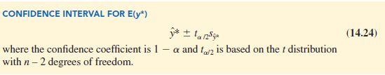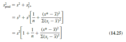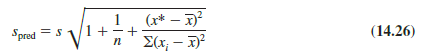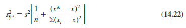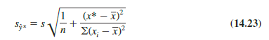 Note that the estimated standard deviation of y* given by equation (14.23) is smallest when x* – x = 0. In this case the estimated standard deviation of y* becomes