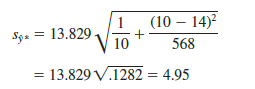 The computational results for Armand’s Pizza Parlors in Section 14.5 provided s = 13.829. With x* = 10, X = 14, and ∑(xi – X)2 = 568, we can use equation (14.23) to obtain