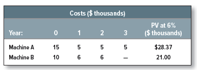 The only way to choose between these two machines is on the basis of cost. The present value of each machine’s cost is as follows:
