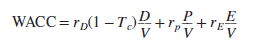 where rP is investors’ expected rate of return on the preferred stock, P is the amount of preferred stock outstanding, and V = D + P + E.