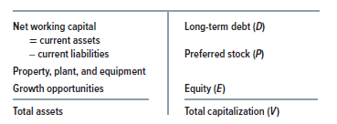 Sangria had just one asset and two sources of financing. A real company’s market-value balance sheet has many more entries, for example: