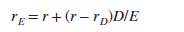This formula is Modigliani and Miller’s proposition 2 (see Section 17-2). It calls for D/E, the ratio of debt to equity, not debt to value.