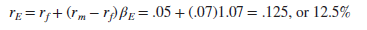 Suppose Sangria’s debt and equity betas in our example are pD = .135 and pE = 1.07.14 If the risk-free rate is 5%, and the market risk premium is 7.0%, then Sangria’s cost of equity is