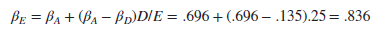 Use this formula to recalculate pE when D/E changes. If the beta of Sangria’s debt stays at .135 when it moves to a debt-equity ratio of .2/.8 =.25, then
