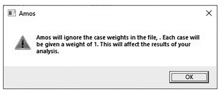 Figure 10.3 AMOS Error Message When Trying to Use a Weighted Score Data File