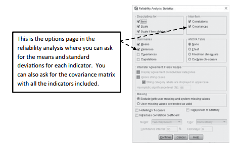 Figure 10.4 Using the Reliability Analysis Function to get a Covariance Matrix