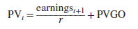 This latest formula for PVH is still DCF. We are valuing the business as if assets and earnings will not grow after the horizon date.[2] (The business probably will grow, but the growth can be ignored, because it will add no net value if PVGO goes to zero.) With no growth, there is no net investment,[3] and all of earnings ends up as free cash flow.