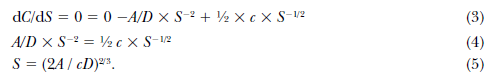 For optimizing the cost, the total cost function has to be differentiated with respect to the warehouse area S: