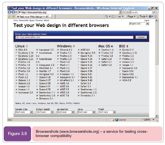 The main management implication for changes in browser usage is ensuring sites have appropriate browser compatibility. An example of a tool for designers to test compatibility is shown in Figure 3.9. We discuss this issue further in Chapter 11 in the context of web design.