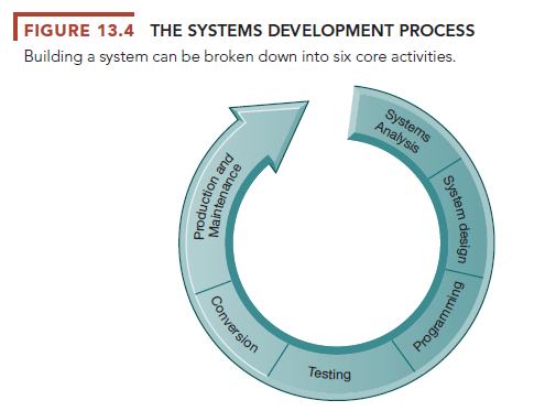 Figure 13.4 illustrates the systems development process. The systems development activities depicted usually take place in sequential order. But some of the activities may need to be repeated or some may take place simultaneously depending on the approach to system building that is being employed (see Section 13-4).