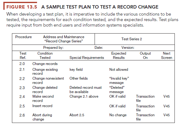 The systems development team works with users to devise a systematic test plan. The test plan includes all of the preparations for the series of tests we have just described.
