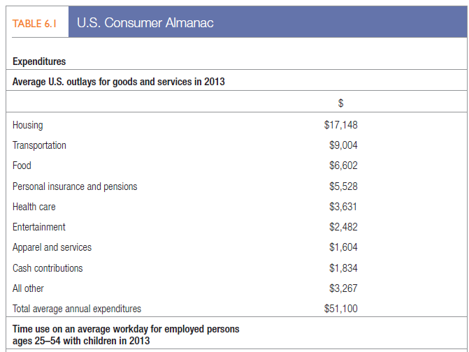 Consumer behavior is the study of how individuals, groups, and organizations select, buy, use, and dispose of goods, services, ideas, or experiences to satisfy their needs and wants.2 Marketers must fully understand both the theory and the reality of consumer behavior. Table 6.1 provides a snapshot profile of U.S. consumers.