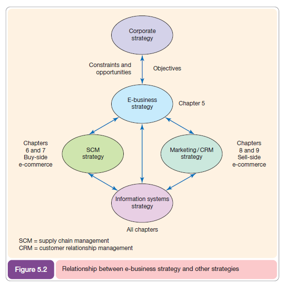 However, these corporate objectives should be based on new opportunities and threats related to electronic network adoption, which are identified from environment analysis and objectives defined in an e-business strategy. So it can be said that e-business strategy should not only support corporate strategy, but should also influence it. Figure 5.2 explains how e-business strategy should relate to corporate and functional strategies. It also shows where these topics are covered in this book.