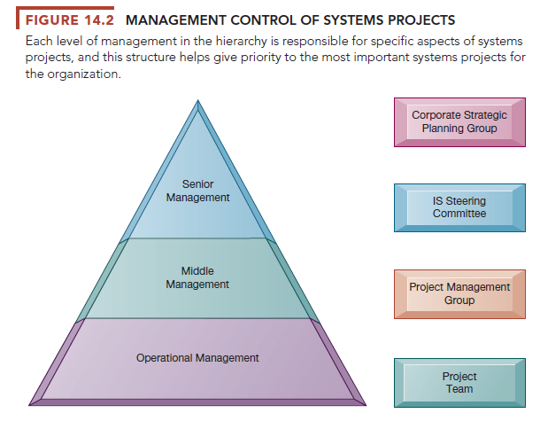 Figure 14.2 shows the elements of a management structure for information systems projects in a large corporation. It helps ensure that the most important projects are given priority.