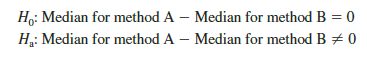 In particular, we will use the Wilcoxon signed-rank test for the difference between the median completion times for the two production methods. The hypotheses are as follows: