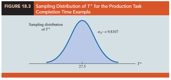 Figure 18.3 shows the sampling distribution of the T + test statistic.