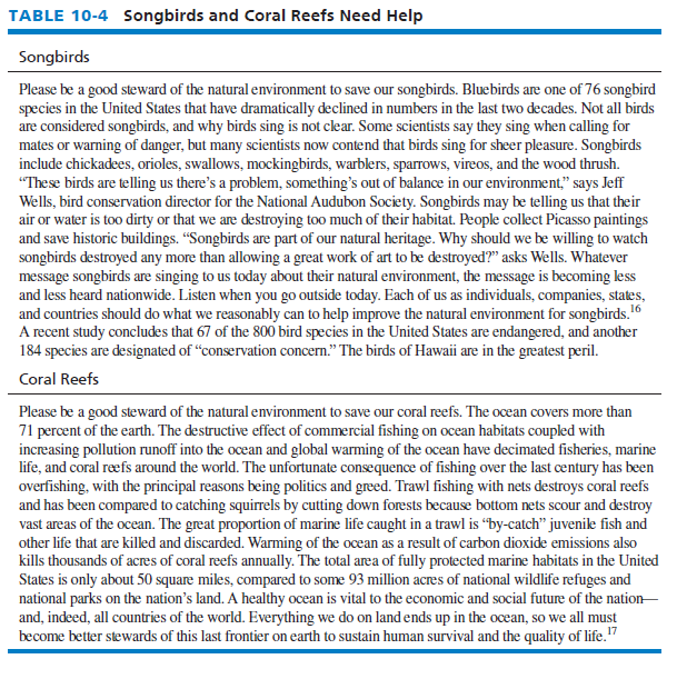Table 10-4 reveals the impact that bad environmental policies have on songbirds and coral reefs, two of nature’s many ecosystems.